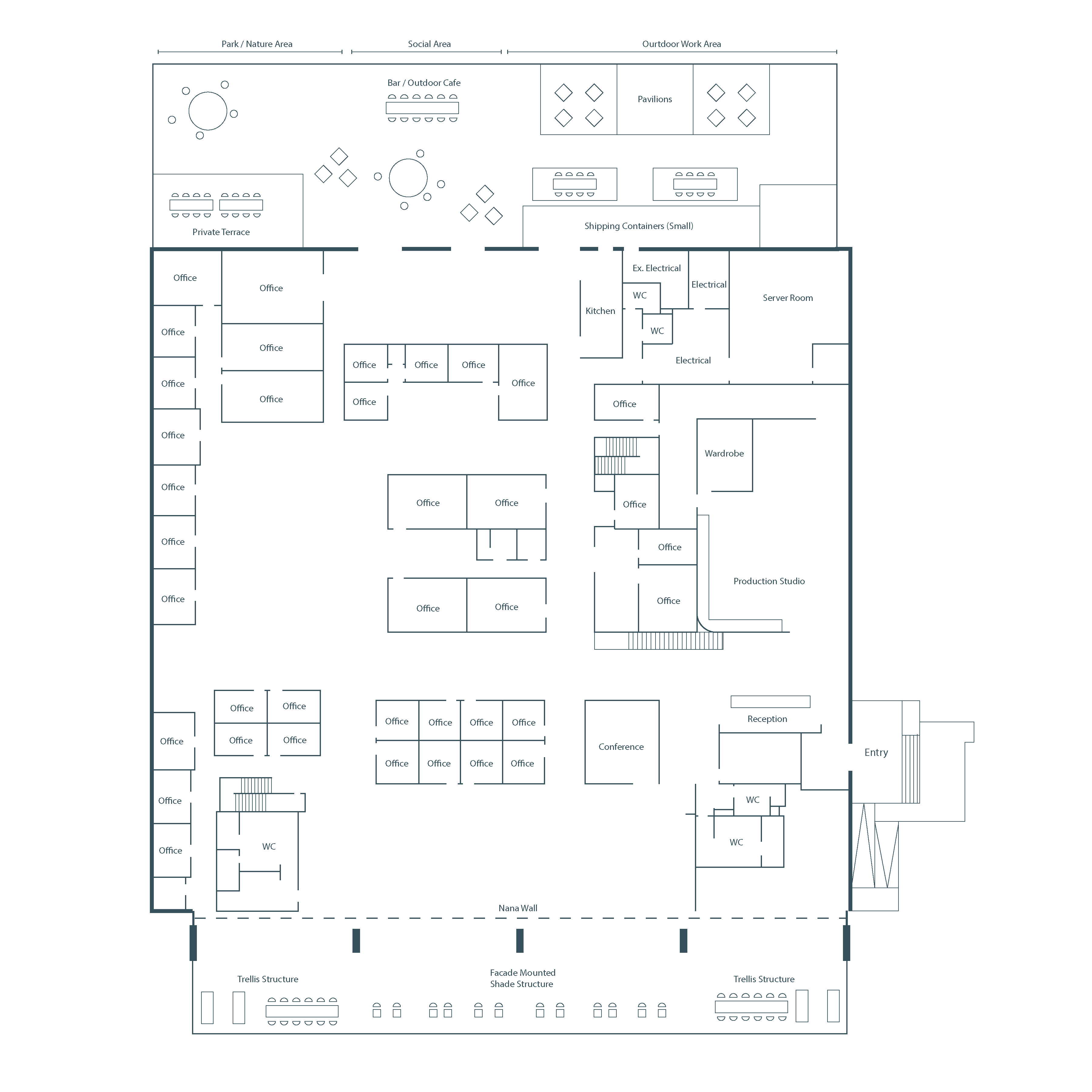 - Expansive patios for outdoor meetings and pop-up offices: 13,000 RSF